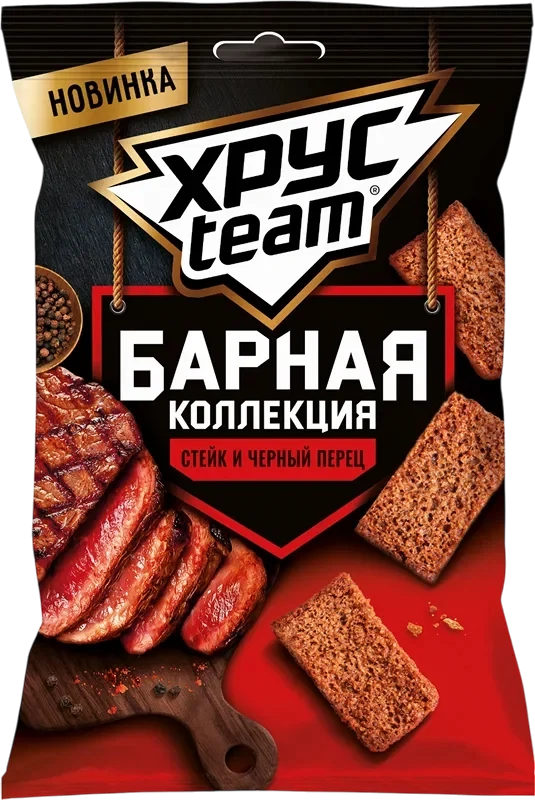 - Название на русском Сухарики Хрустим Барная Коллекция Стейк с черным перцем