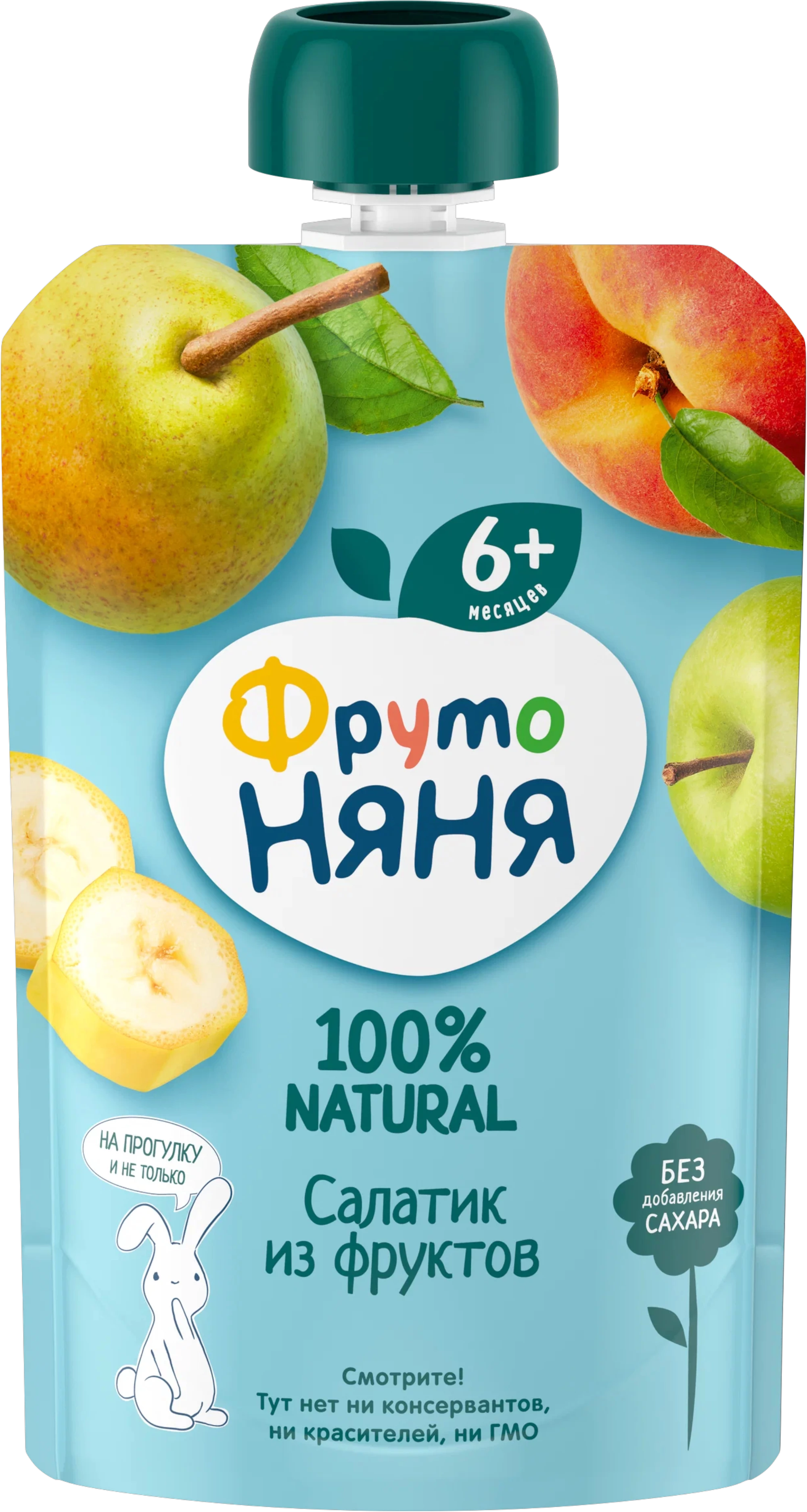 Детское пюре «ФрутоНяня» Салатик из фруктов — это сбалансированный микс из спелых яблок, груш и персиков, созданный специально для расширения рациона малыша. Продукт изготавливается исключительно из натуральных ингредиентов без добавления сахара, крахмала и консервантов. Благодаря бережной технологии переработки фрукты сохраняют максимум природных витаминов и нежную текстуру. Компактная мягкая упаковка с завинчивающейся крышкой позволяет брать полезный перекус на прогулку или в путешествие.