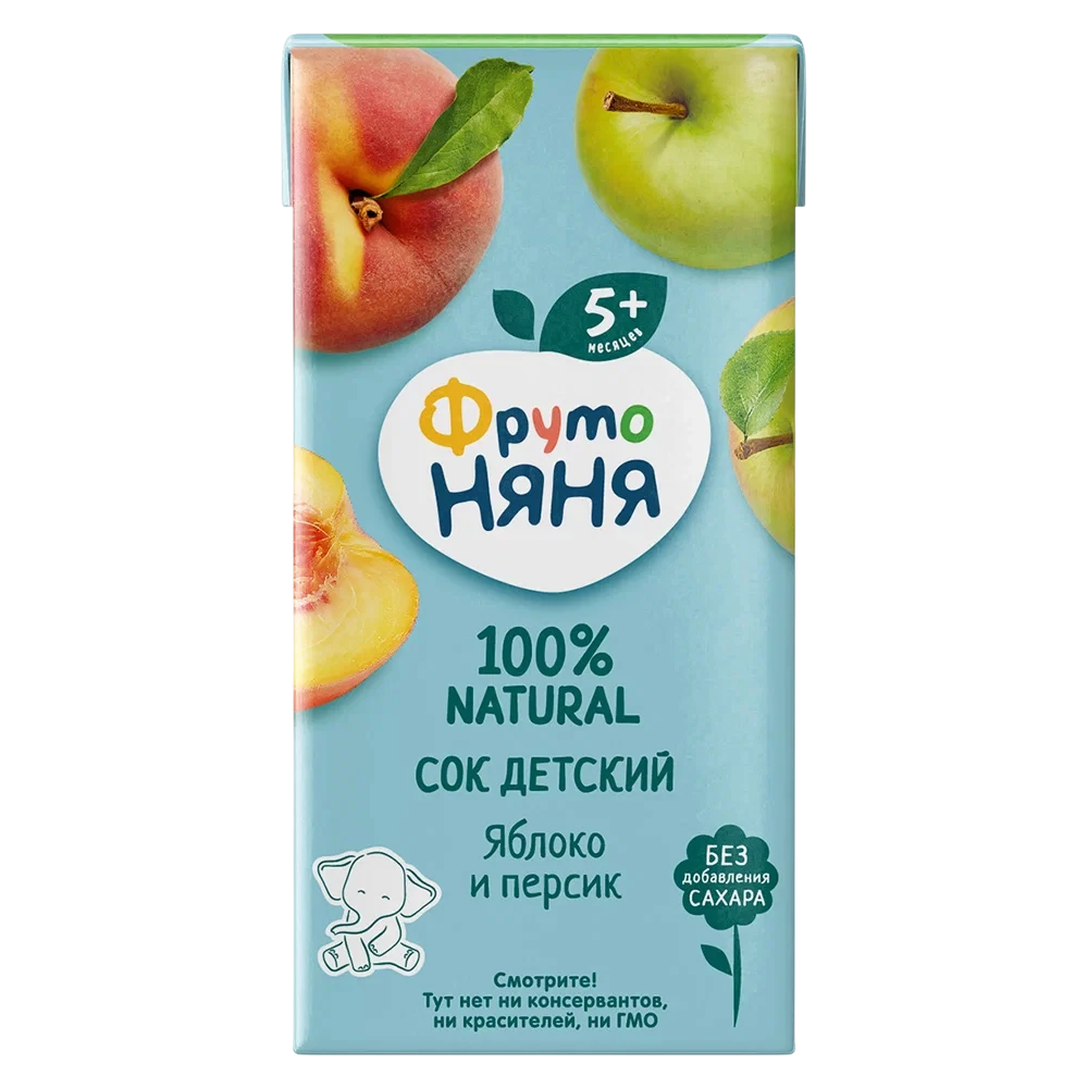 Сок «ФрутоНяня» яблоко и персик — это нежный и ароматный напиток, созданный специально для первого знакомства малыша с многогранными вкусами фруктов. Сочетание отборных зелёных яблок и бархатистого персика обеспечивает организм ребёнка необходимой клетчаткой и витаминами для здорового роста. Благодаря технологии бережного приготовления, продукт сохраняет естественную сладость и пользу плодов без добавления сахара. Компактный формат с трубочкой превращает перекус в удобную и приятную прогулку или дополнение к обеду.