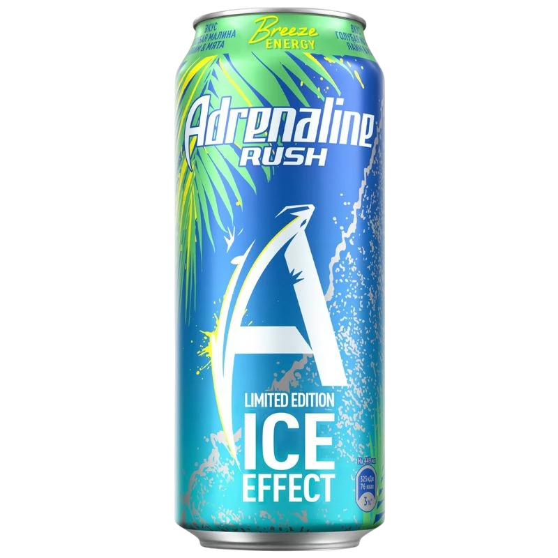 Напиток «Adrenaline Rush Breeze» — это взрывная новинка, которая мгновенно заряжает энергией и дарит по-настоящему ледяное ощущение свежести. В его основе — уникальный микс яркой голубой малины, освежающего лайма и прохладной мяты. Этот энергетический напиток не только бодрит за счёт таурина и кофеина, но и содержит важные витамины группы B. Идеальный выбор, чтобы справиться с усталостью во время активного дня, напряжённой работы или интенсивной тренировки.