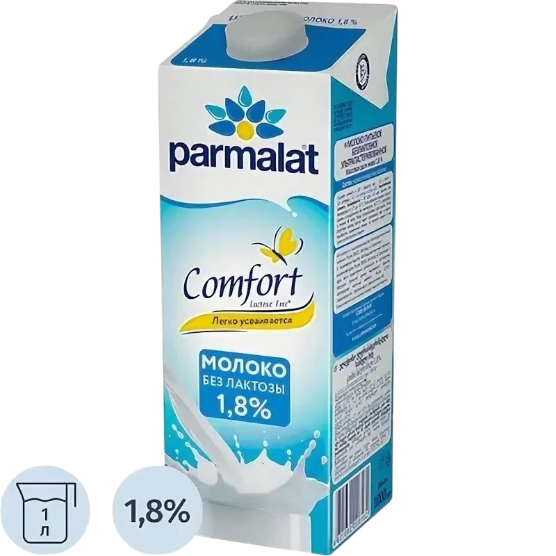 - Название на русском Молоко питьевое 1,8% Пармалат Комфорт без лактозы БЗМЖ