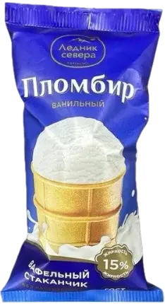 - Название на русском Мороженое Ледник Севера пломбир в вафельном стаканчике БЗМЖ