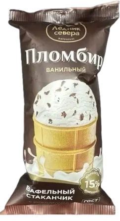 - Название на русском Мороженое Ледник Севера пломбир ванильный с шок.крошкой в ваф.стакане БЗМЖ