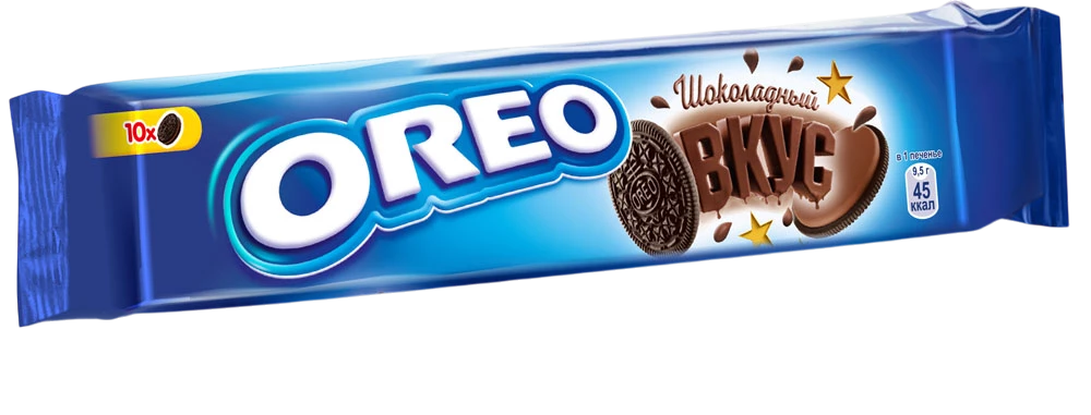 «Oreo» шоколадный вкус – это популярное печенье, которое состоит из двух тёмных печенек с какао, соединённых нежной шоколадной начинкой. Это простое и вкусное сочетание стало классикой, любимой во всём мире. Оно отлично подходит для чаепития или в качестве десерта.