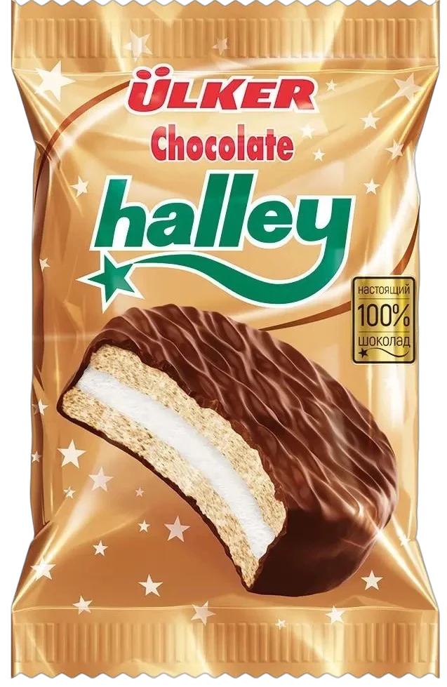 «Halley» — знаменитое сэндвич-печенье от компании Ulker, представляющее собой идеальное сочетание текстур и вкусов. История «Halley» началась с вдохновения американским сэндвич-печеньем, которое было адаптировано под восточные вкусовые предпочтения. Между двумя нежными бисквитными печеньками спрятан воздушный, слегка тягучий маршмэллоу, и всё это покрыто густым слоем тающего молочного шоколада. Это настоящий хит для семейного чаепития или быстрого, но очень сытного и сладкого перекуса.