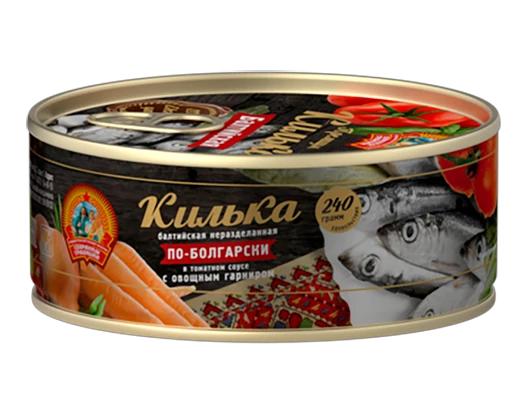 - Название на русском Килька Балтийская с овощным гарниром в т/с По-болгарски «Сохраним традиции»