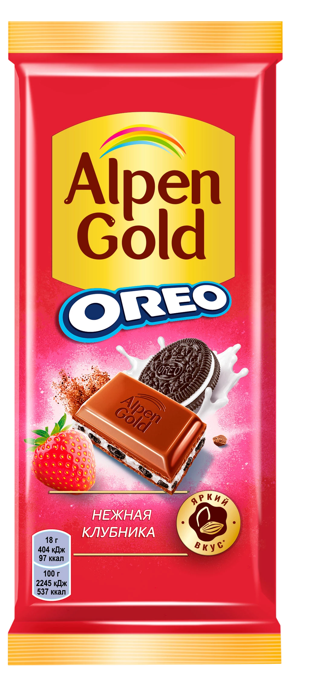 - Название на русском Шоколад Альпен Гольд Орео молочный клубника/печенье