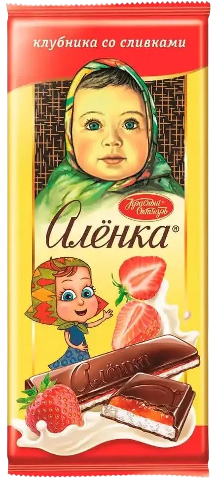 - Название на русском Шоколад Аленка с молочной и желейной начинкой Клубника со сливками