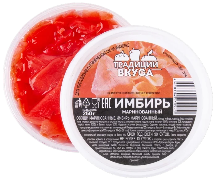 Вопросы о товаре Имбирь маринованный розовый 250 гр Традиции вкуса