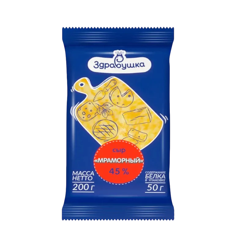 - Название на русском Сыр Мраморный Здравушка БЗМЖ