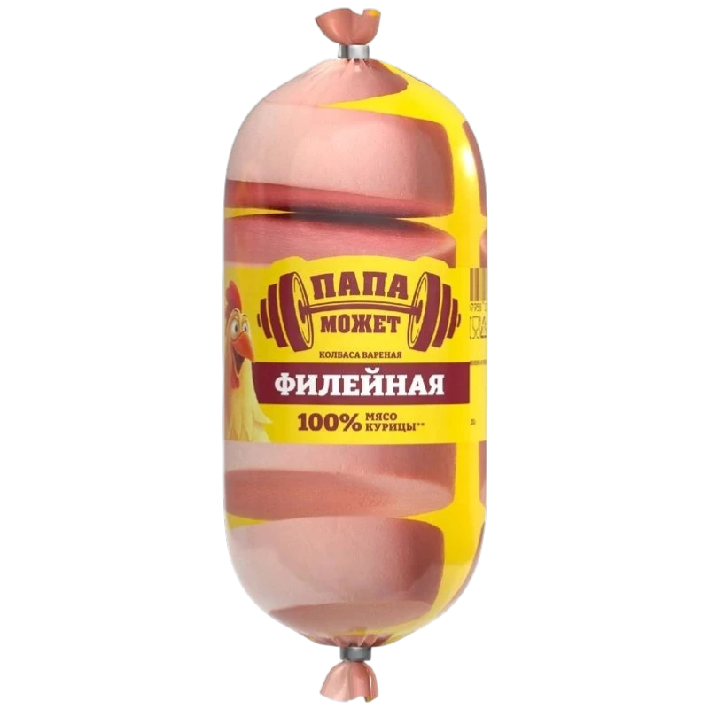 Колбаса «Папа может» Филейная — аппетитная варёная колбаса, созданная специально для тех, кто ценит сочетание нежного вкуса и сытности в каждом ломтике. Продукт изготавливается на основе отборного куриного филе, что обеспечивает лёгкую текстуру и привлекательный мясной профиль. Эта колбаса станет отличным решением для быстрого завтрака, приготовления сытных бутербродов или домашних салатов.