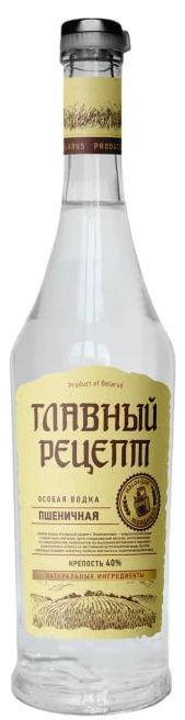 Особая водка «Главный рецепт» Пшеничная — классическая водка с приятным, мягким, чуть сладковатым вкусом, изготовленная по традиционной технологии из высококачественного зернового спирта класса «Люкс» и чистейшей артезианской воды. Настой пшеницы придает напитку особую мягкость и запоминающийся вкус. Благодаря своему гармоничному характеру, она станет отличным выбором как для классической подачи, так и для создания коктейлей.